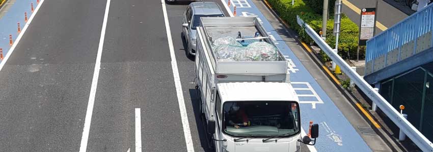 Aさんは、一方通行の1車線を前方のトラックの後ろについて、走行していました。