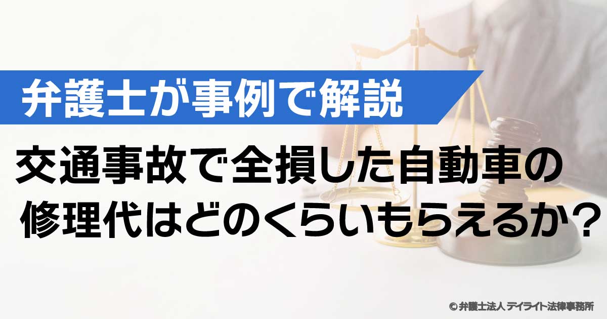 全損と判断された場合には、修理費用ではなく、中古車市場における事故にあった車と同等の車の時価額が損害となります。