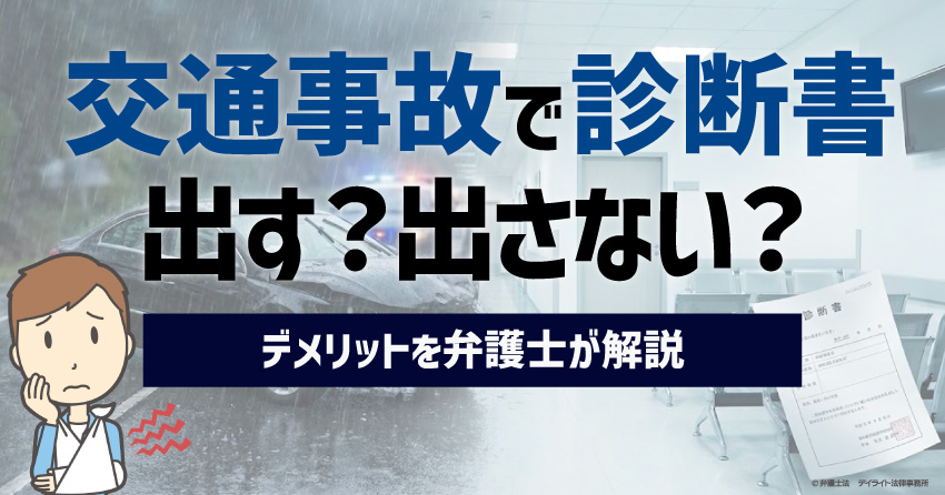 この記事では、交通事故で診断書を出すことのメリットやデメリット、診断書を出した方がいいケース・出さない方がいいケース、診断書の提出の仕方や注意点などについて、弁護士がわかりやすく解説していきます。