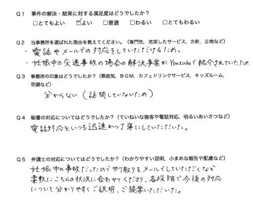 妊娠中の事故だったため、HPに妊娠中の事故の実例、実績が記載あったため