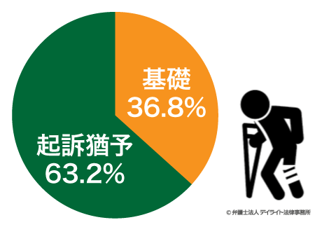 傷害罪の起訴率は36.8%、起訴猶予率は、63.2%となっています。