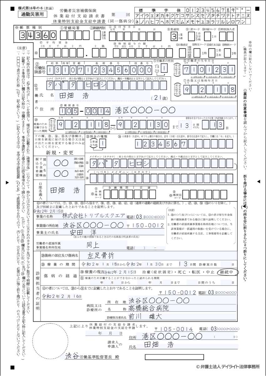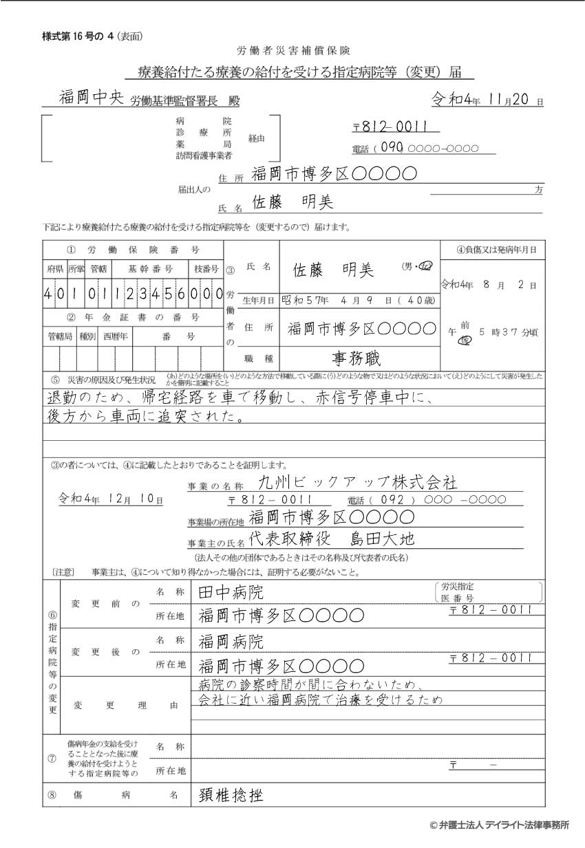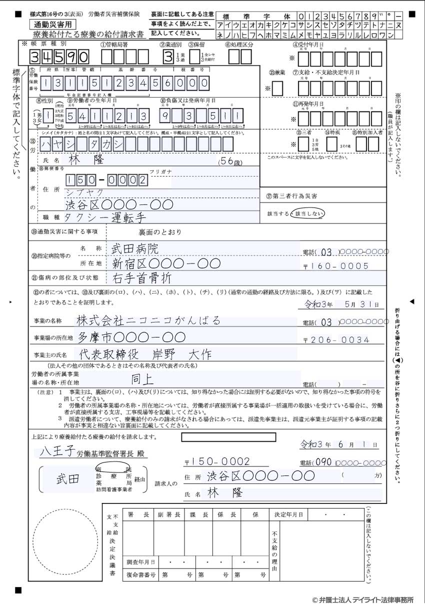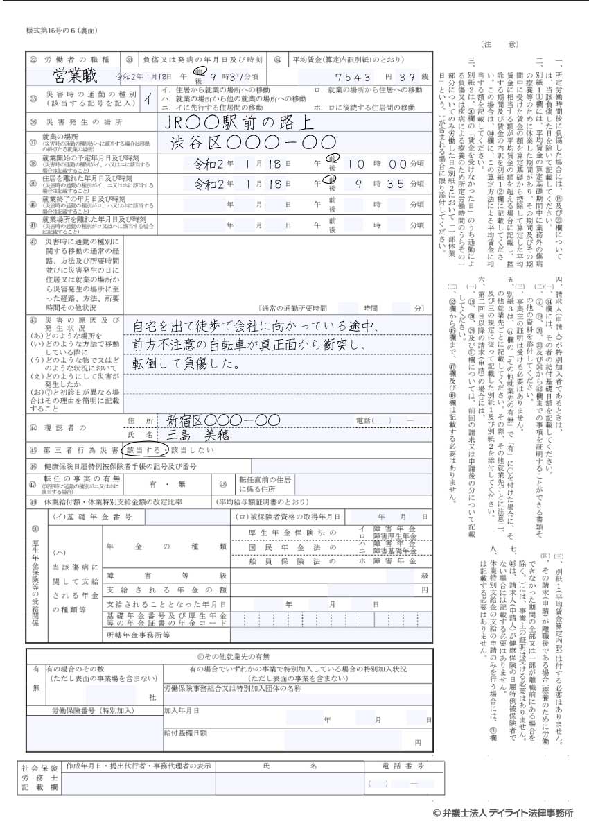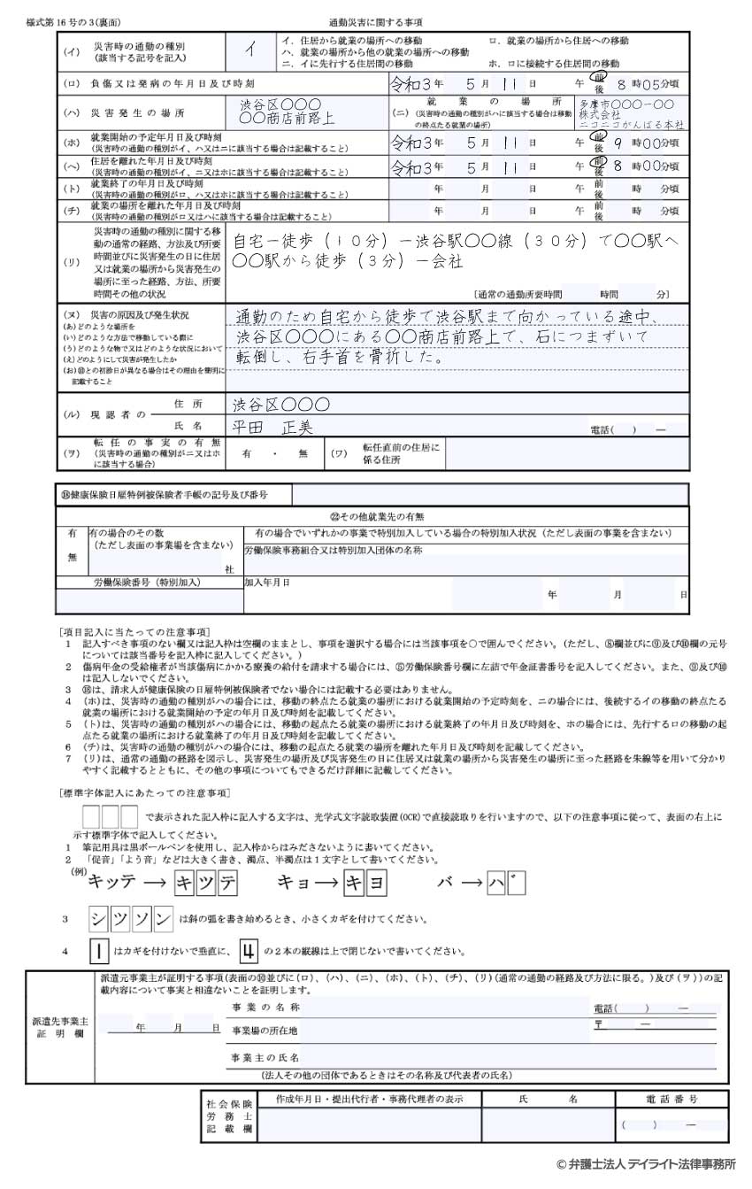 以下では、通勤災害でよく提出することが多い書類の記入例や書き方を解説します。