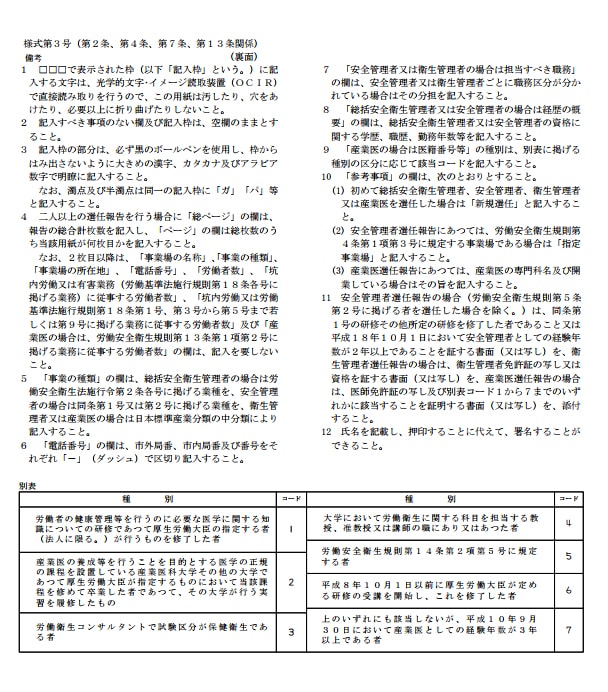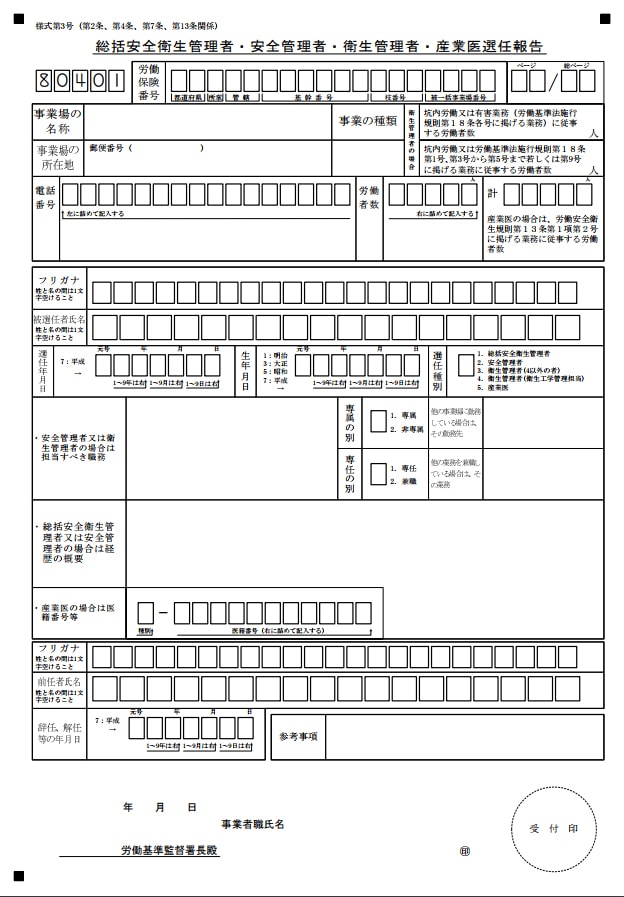 総括安全衛生管理者・安全管理者・衛生管理者・産業医選任報告
